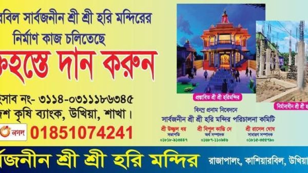 কক্সবাজার জেলার চকরিয়ার হারবাং ধরপাড়ায় আগামী ৪ নভেম্বর থেকে শুরু হচ্ছে চারদিনব্যাপী ৫৬তম সার্বজনীন শ্রীশ্রী রাস মহোৎসব। শ্রীশ্রী কেন্দ্রীয় হরি ...বিস্তারিত পড়ুন