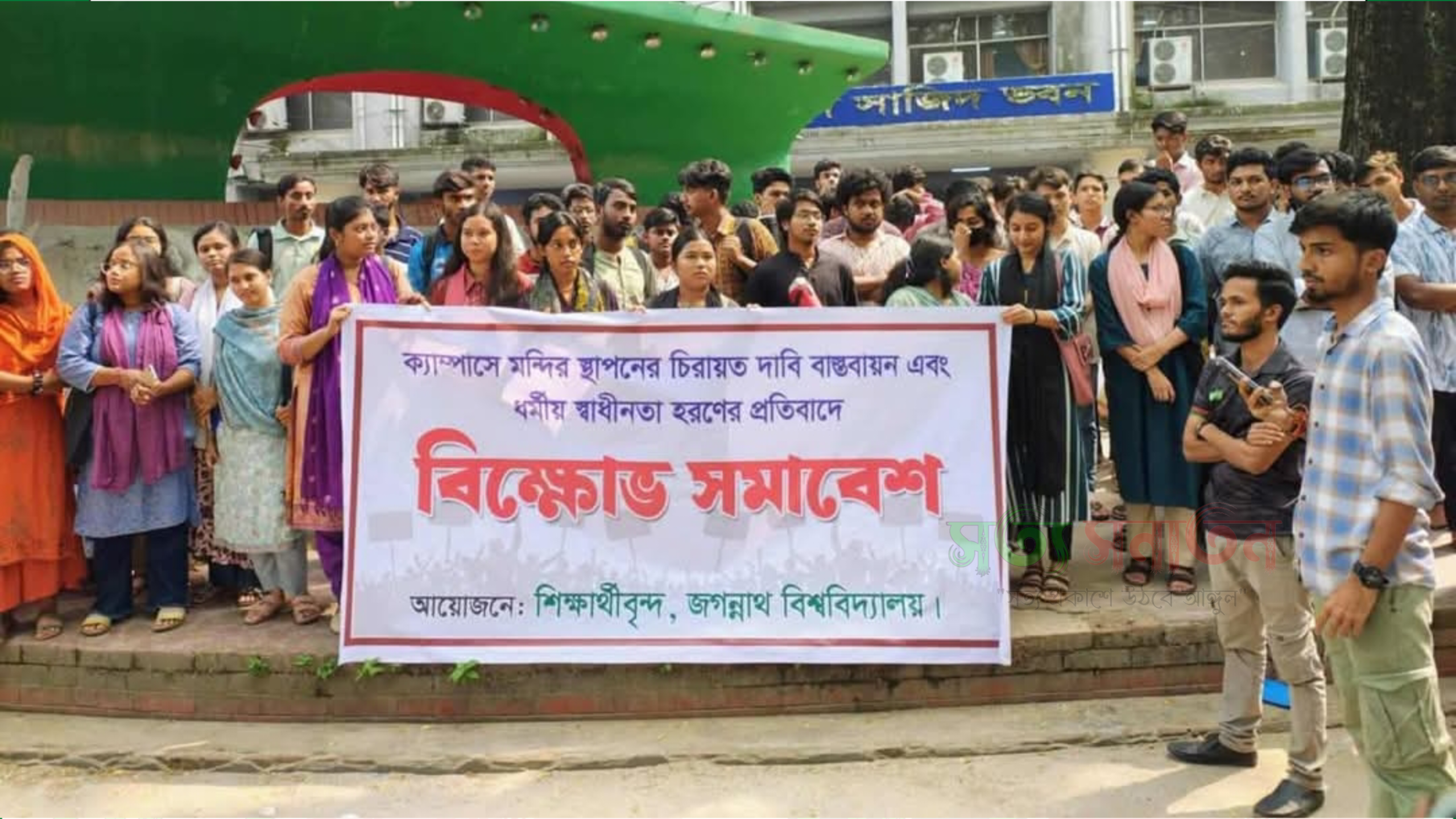 গণতান্ত্রিক ছাত্র সংসদের কেন্দ্রীয় সদস্য সচিব কিশোয়ার আনজুম সাম্য বলেন, “এই বাংলা যতটা হিন্দুর, ততটাই মুসলমান, বৌদ্ধ, খ্রিস্টানেরও। ধর্মীয় সম্প্রীতির এই ঐতিহ্যে বিভাজনের রাজনীতি চলবে না। আমরা বলছি এই জগন্নাথে মন্দির হবে, পূজাও হবে।” সতয় সনাতন টিভি