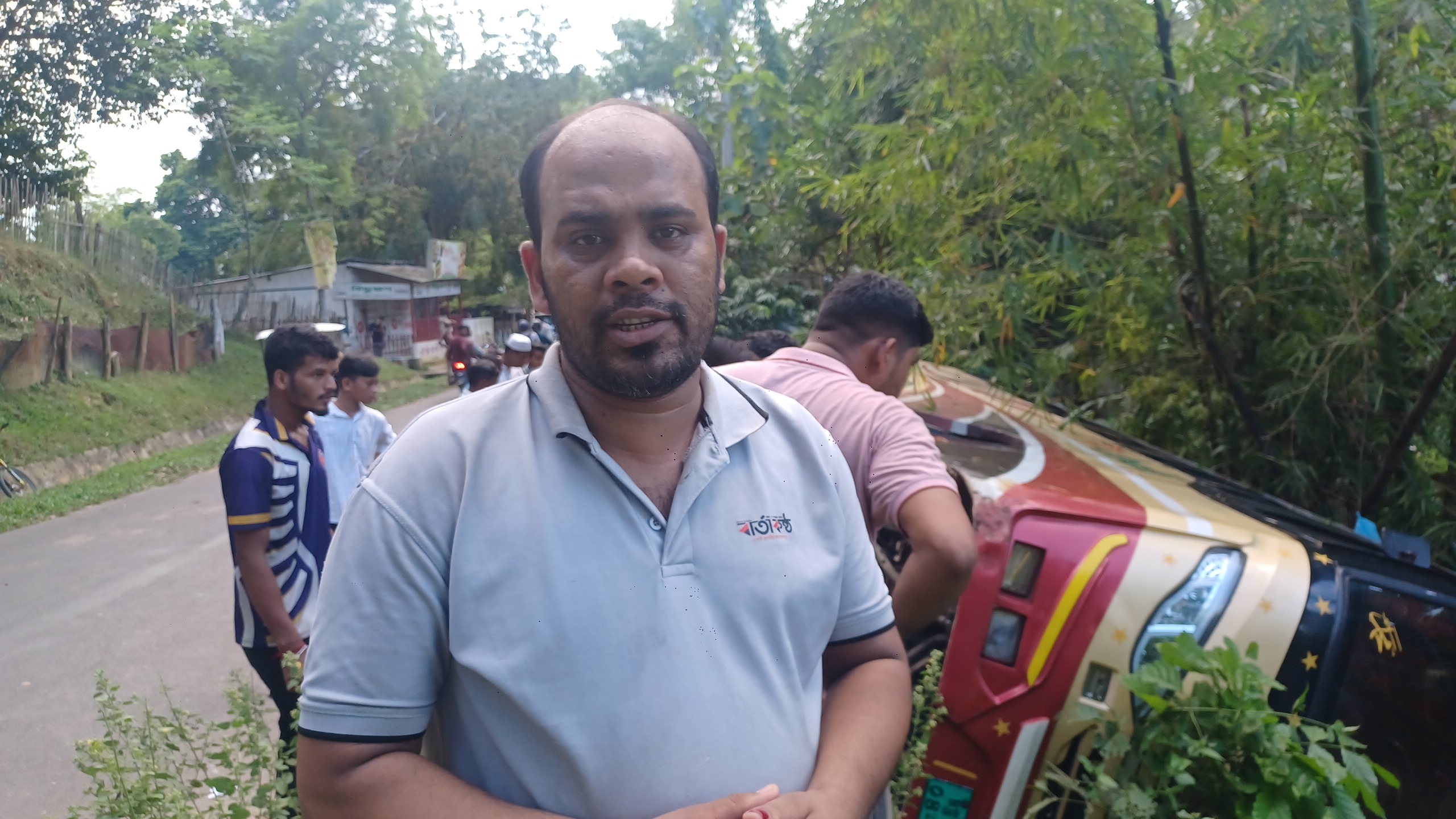 রাজস্থলী উপজেলার বাঙ্গালহালিয়াতে নিয়ন্ত্রন হারিয়ে বাস উল্টে খাদে, আহত ১