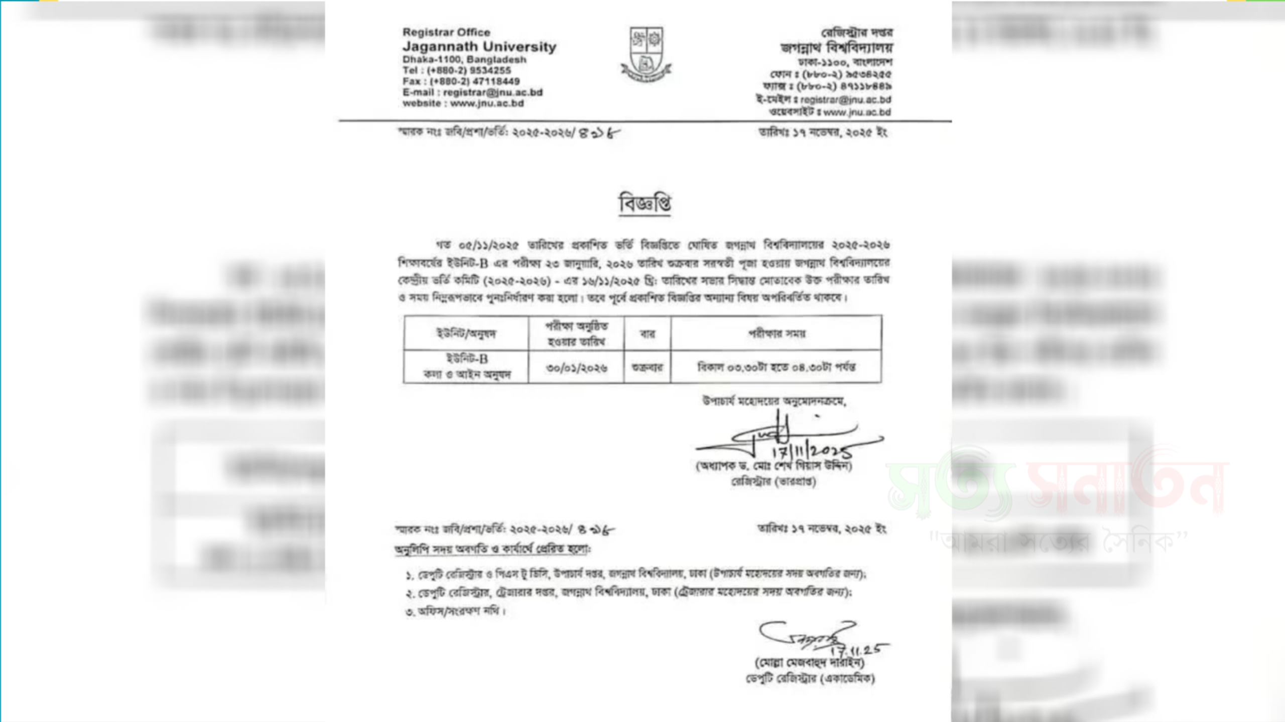 পরিস্থিতি বিবেচনা করে বিশ্ববিদ্যালয় প্রশাসন পরীক্ষার তারিখ পিছিয়ে ৩ ফেব্রুয়ারি নতুন সময়সূচি ঘোষণা করে। ভর্তি কমিটির আহ্বায়ক জানান, সকল শিক্ষার্থীর ধর্মীয় অনুভূতির প্রতি সম্মান দেখিয়েই এই সিদ্ধান্ত নেওয়া হয়েছে। তিনি আরও বলেন, পরীক্ষার সময়সূচি সংশোধন করে দ্রুত বিশ্ববিদ্যালয়ের ওয়েবসাইটে আপডেট দেওয়া হবে।
