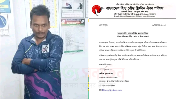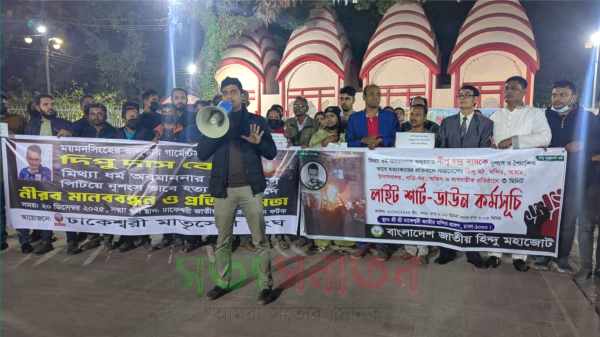 ময়মনসিংহে নির্মমভাবে নিহত সংখ্যালঘু যুবক দীপু চন্দ্র দাশ এর হত্যার প্রতিবাদে রাজধানীতে নীরব মানববন্ধন কর্মসূচি পালন করেছে ঢাকেশ্বরী মাতৃসেবা সংঘ ও বাংলাদেশ জাতীয় হিন্দু মহাজোট। গত ২০ ডিসেম্বর ২০২৫ ইংরেজি ...বিস্তারিত পড়ুন