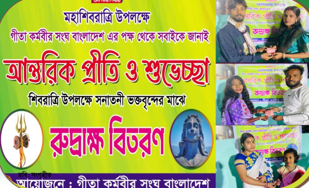 আসন্ন মহাশিবরাত্রি উপলক্ষে দেশের বিভিন্ন মন্দিরে এক হাজার একটি রুদ্রাক্ষ ও লাল সূতা বিনামূল্যে বিতরণ করেছে গীতা কর্মবীর সংঘ বাংলাদেশ। খুলনা, যশোর ও মাগুরা জেলার বিভিন্ন মন্দিরে এ কর্মসূচি পালন করা হয়।