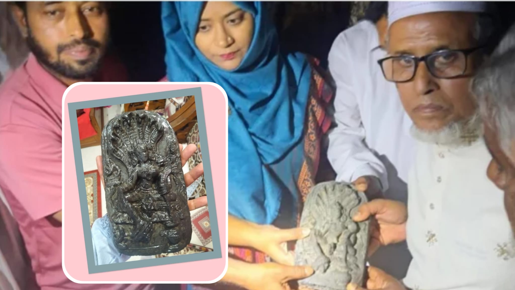 স্থানীয় সূত্রে জানা যায়, প্রায় এক বছর আগে ভেকু দিয়ে পুকুরটি খনন করা হয়। পরে সেখানে মাছ চাষ শুরু হয়। রোববার দিনভর পুকুরে সেচ দিয়ে মাছ ধরার সময় জেলেদের জালে হঠাৎ একটি পাথরের মূর্তি উঠে আসে। বিষয়টি দ্রুত এলাকায় ছড়িয়ে পড়লে উৎসুক মানুষ পুকুরপাড়ে ভিড় করেন।