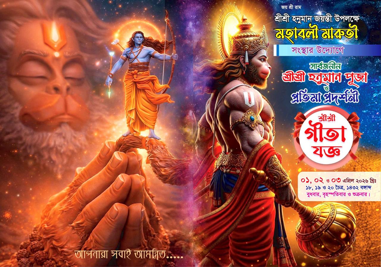 মহাবলী মারুতি সংঘের উদ্যোগে আয়োজিত এ কর্মসূচিতে ধর্মীয় আচার-অনুষ্ঠানের পাশাপাশি গীতাপাঠ, পূজা-অর্চনা, আলোচনা সভা ও সাংস্কৃতিক অনুষ্ঠান অনুষ্ঠিত হবে। আয়োজকরা জানান, হনুমান জয়ন্তীকে কেন্দ্র করে ভক্তদের মধ্যে ভক্তি, ঐক্য ও ধর্মীয় চেতনা জাগ্রত করাই এই আয়োজনের মূল উদ্দেশ্য।