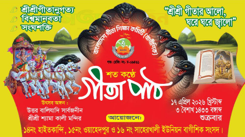 অনুষ্ঠানের অংশ হিসেবে রবিবার সন্ধ্যায় শ্রীমদ্ভগবদ্গীতা পাঠ করেন শ্রী নিকুঞ্জ বন্ধু ব্রহ্মচারী। সোমবার গীতা পাঠ করেন শ্রী চন্দন টিকাদার এবং মঙ্গলবার গীতা পাঠ করেন অধ্যাপক ডা. এ. সি. পাল।