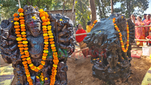 গত ১১ ডিসেম্বর ২০২৫ ইংরেজি রোজ বৃহস্পতিবার ভারতের পশ্চিমবঙ্গের দক্ষিণ দিনাজপুর জেলার তপন ব্লকের গুড়াইল গ্রাম পঞ্চায়েতের অন্তর্গত ভাউর মায়ের স্থান সংলগ্ন একটি পুকুর থেকে উদ্ধার হয়েছে চতুর্মুখ সংযুক্ত মহাকাল