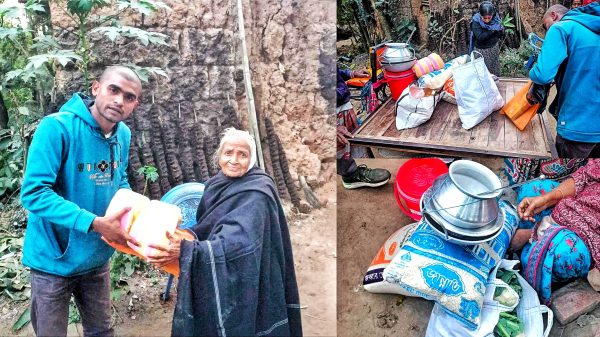 নওগাঁ জেলার মহাদেবপুর উপজেলার সফাপুর ইউনিয়নের চকগৌড়ি গ্রামে শতবর্ষী সনাতনী মা রেনুকা বালা দীর্ঘদিন ধরে প্রতিবন্ধী ছেলেকে নিয়ে মানবেতর জীবনযাপন করছেন। বয়সের ভারে দাঁড়ানোর শক্তি নেই, হাঁটার শক্তি নেই তারপরও