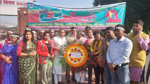 মহান বিজয় দিবস উপলক্ষে জাতির শ্রেষ্ঠ সন্তান বীর শহীদদের প্রতি গভীর শ্রদ্ধা নিবেদন করেছে বাংলাদেশ হিন্দু বৌদ্ধ খ্রিষ্টান ঐক্য পরিষদ ও এর অঙ্গ-সংগঠনের নেতৃবৃন্দ। সোমবার (১৬ ডিসেম্বর) সকালে সাভারের